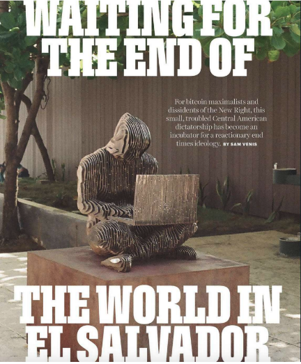 A reported feature on the the influence of the New Right and the bitcoin scene on President Bukele. Playboy Magazine.